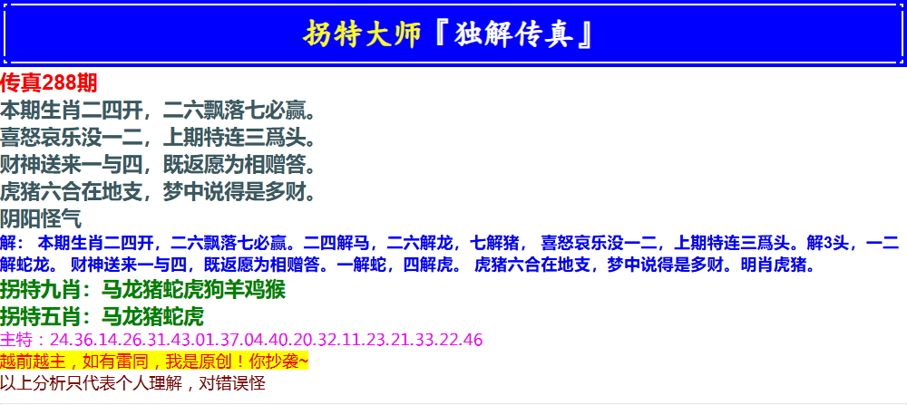 请网民自行判断真伪,谨防网上预测诈骗,本站内容均摘自络。