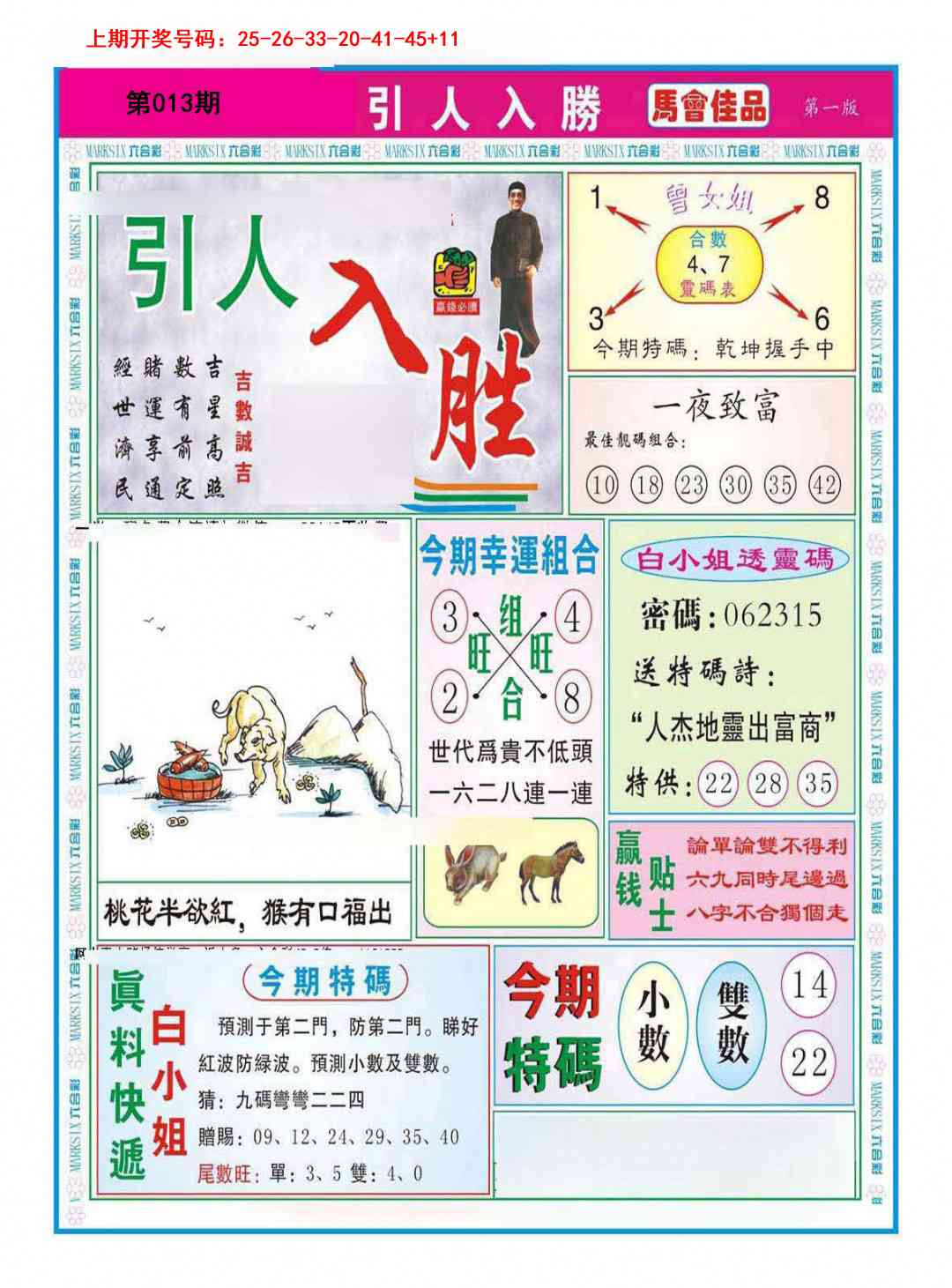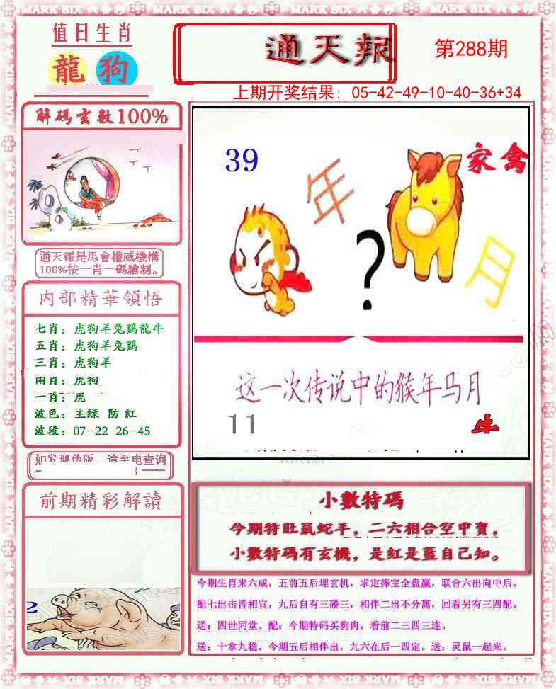 天肖:兔马猴猪牛龙 地肖:蛇羊鸡狗鼠虎