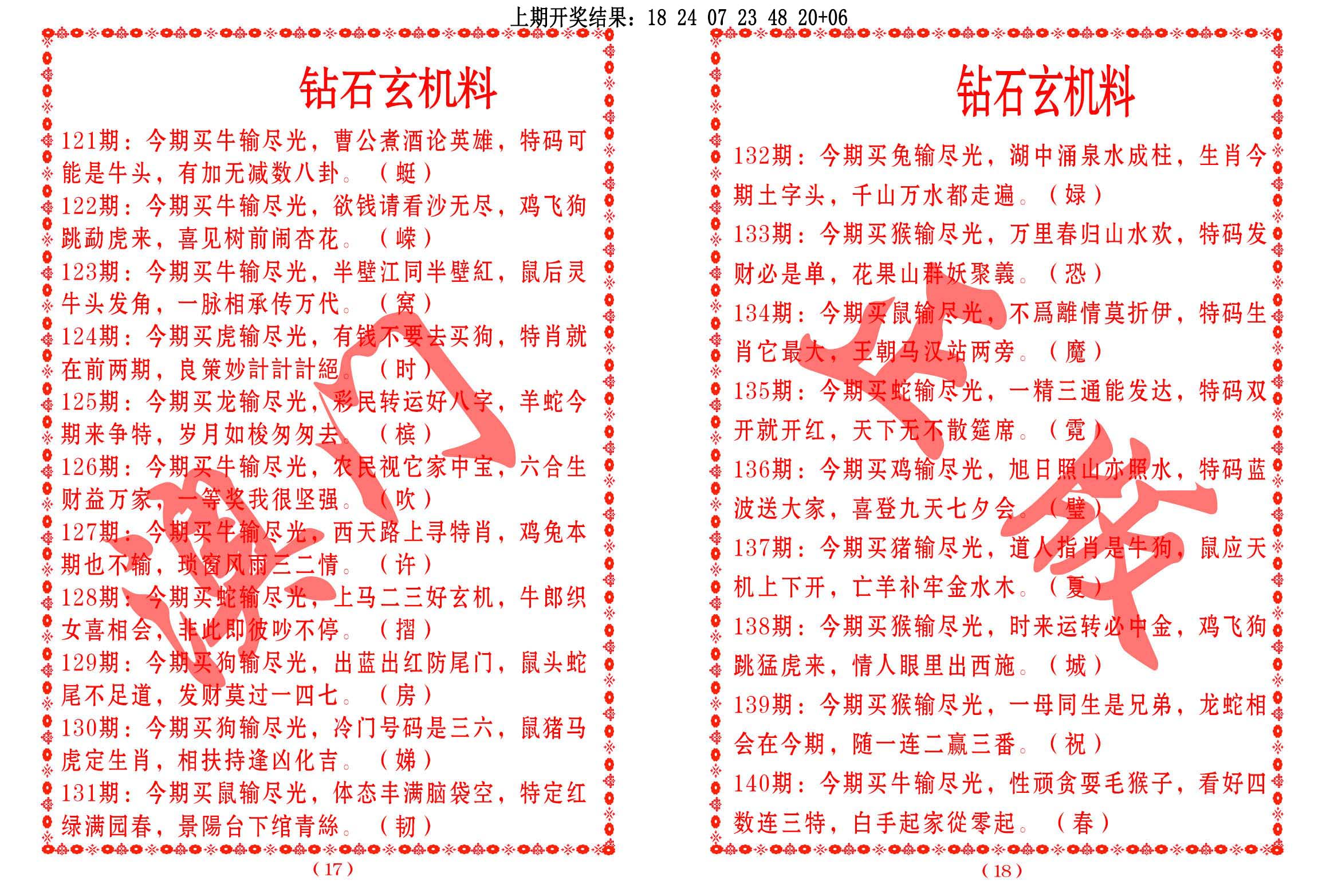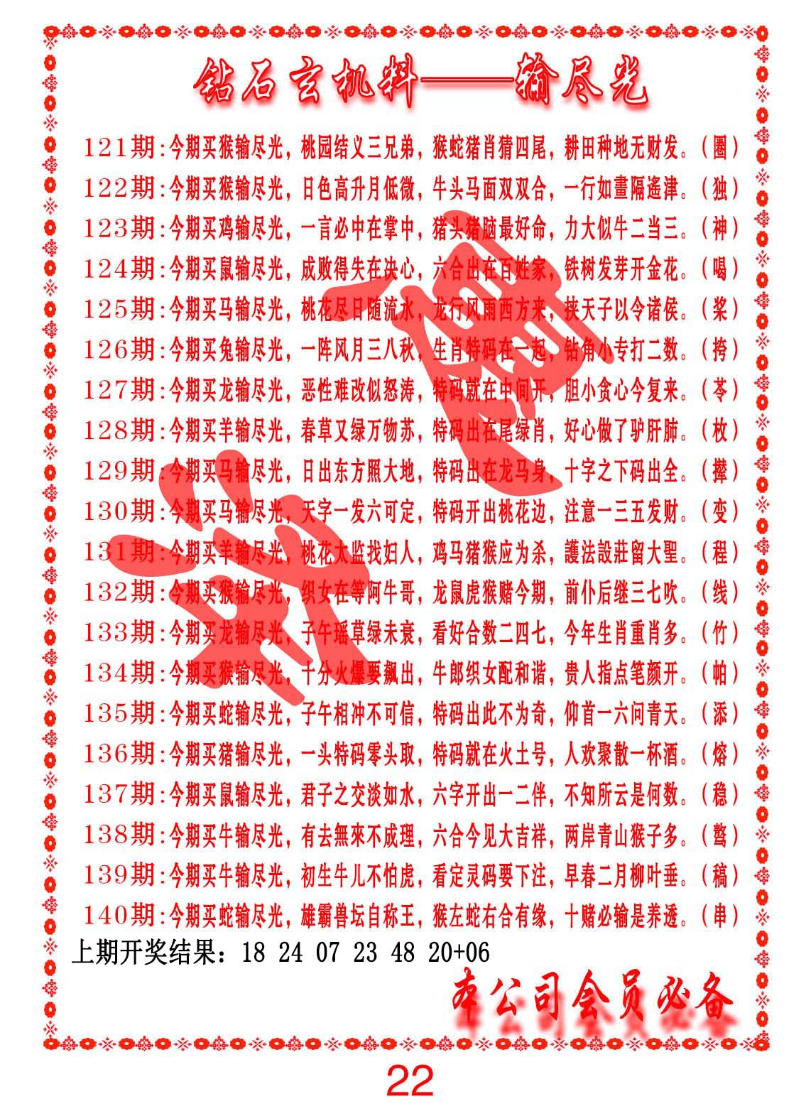 钻石玄机诗-输光料