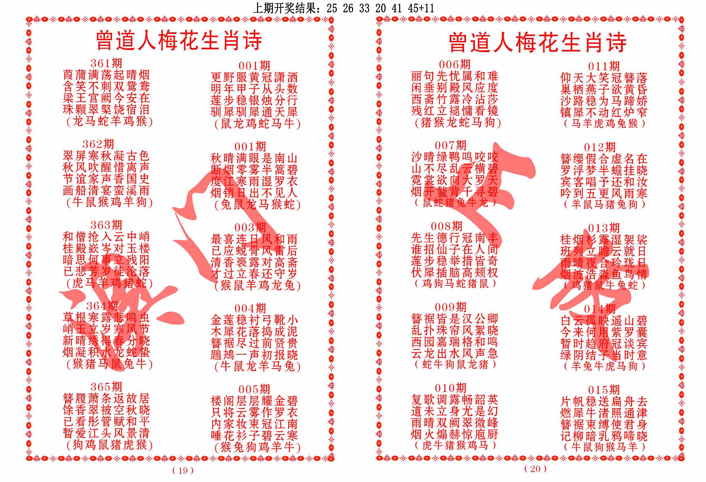 左肖:鼠牛龙蛇猴鸡 右肖:虎兔马羊狗猪