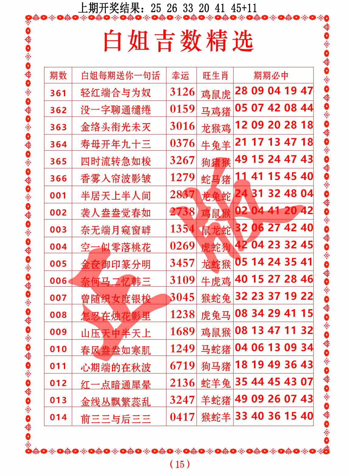 白姐吉数精选