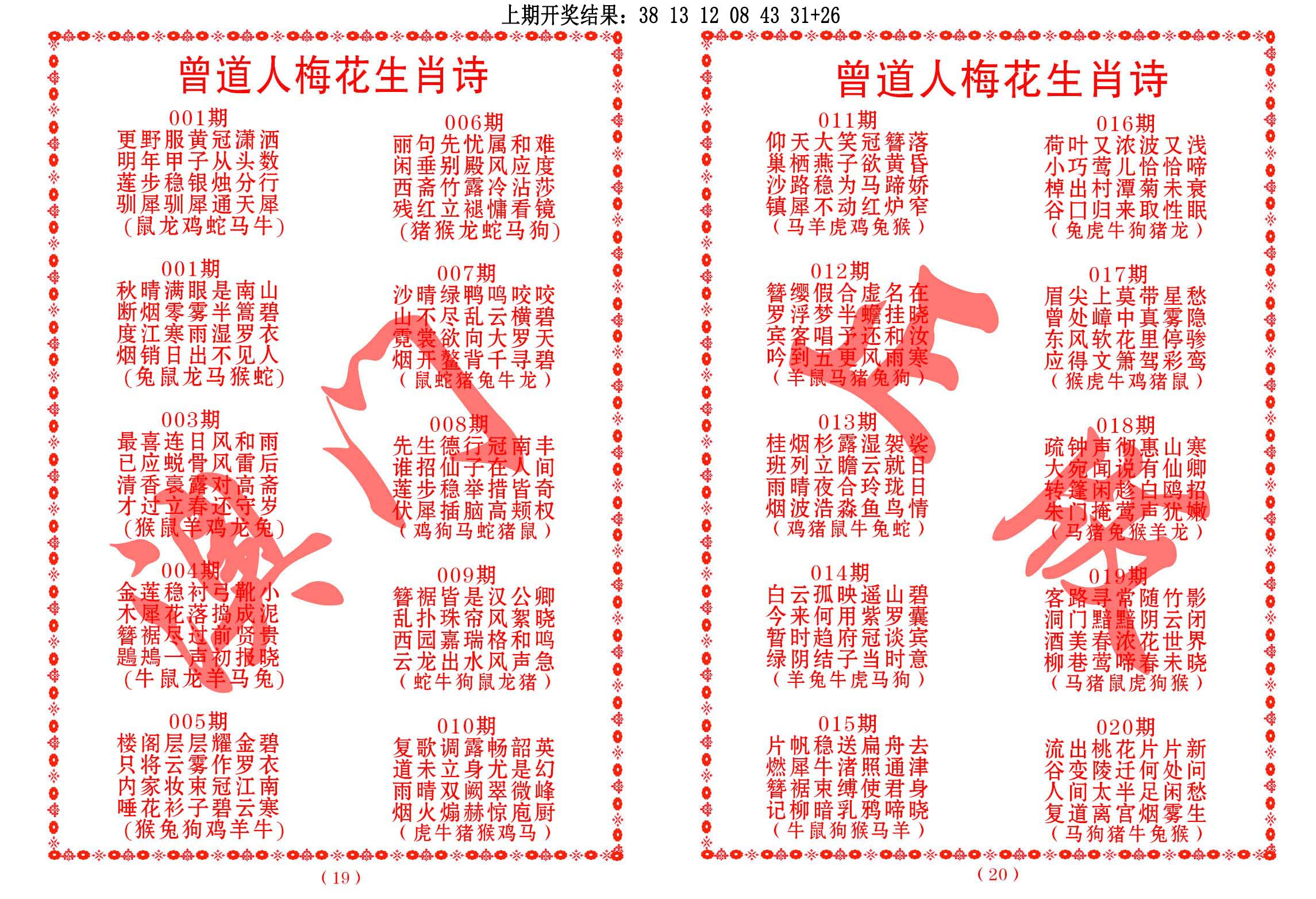 左肖:鼠牛龙蛇猴鸡 右肖:虎兔马羊狗猪
