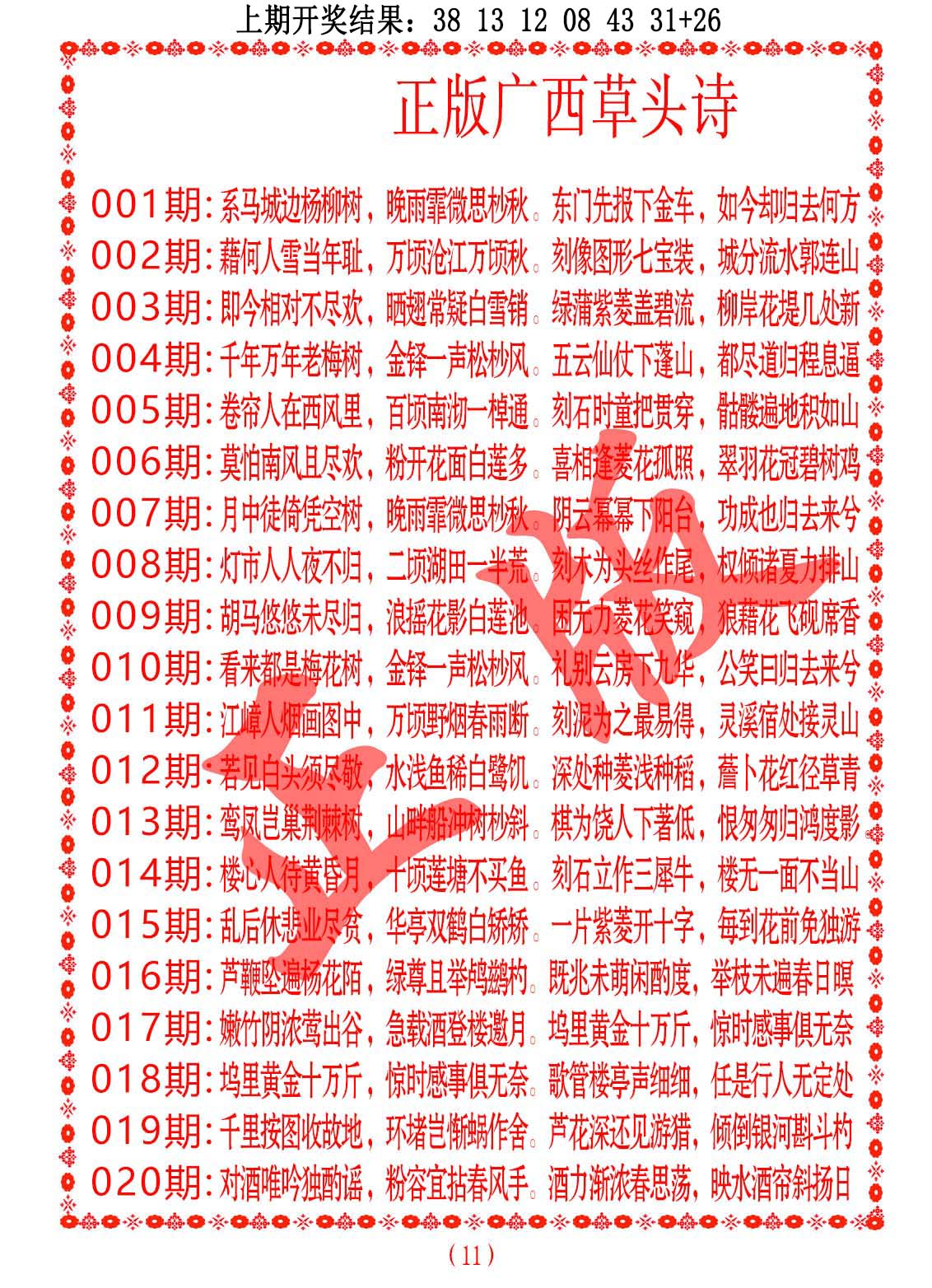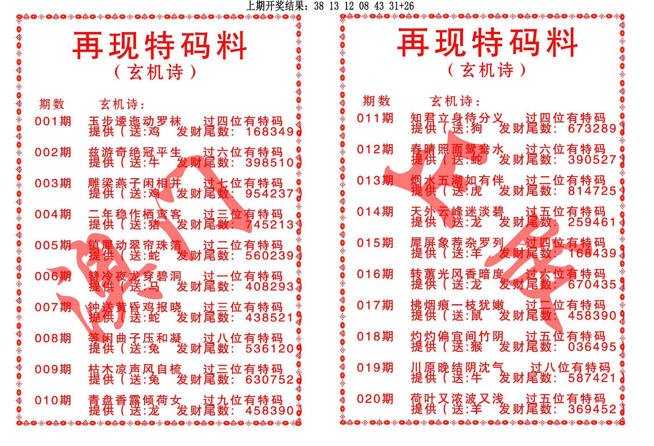 钻石玄机诗-输光料