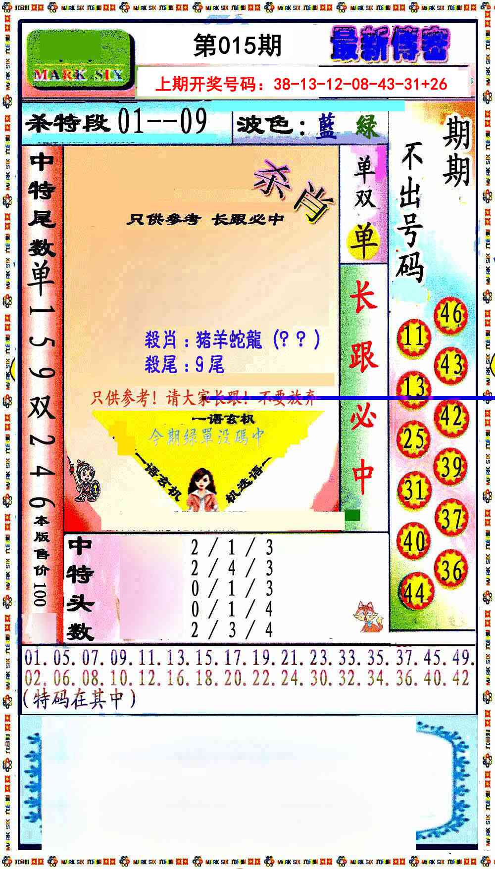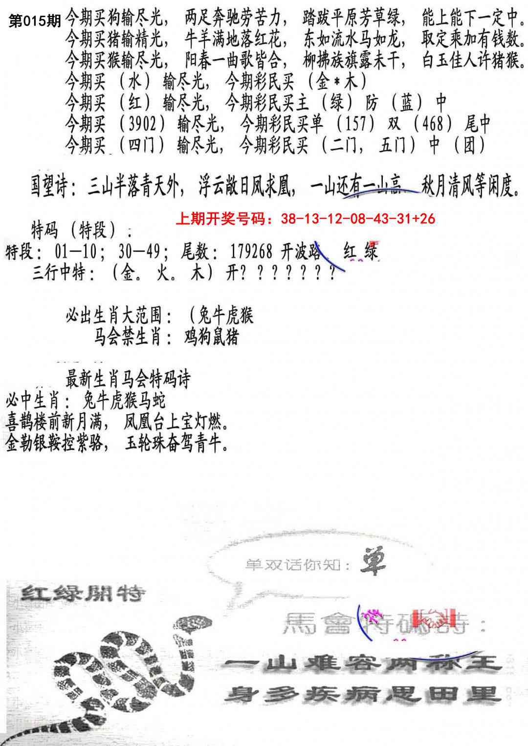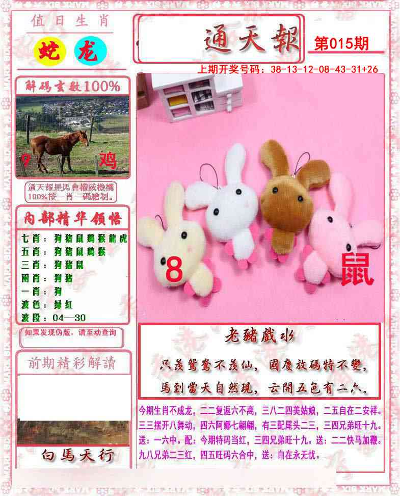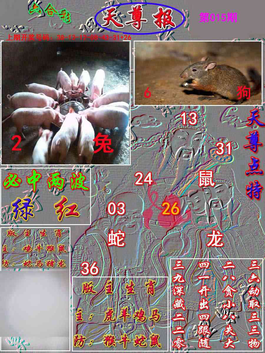 天肖:兔马猴猪牛龙 地肖:蛇羊鸡狗鼠虎