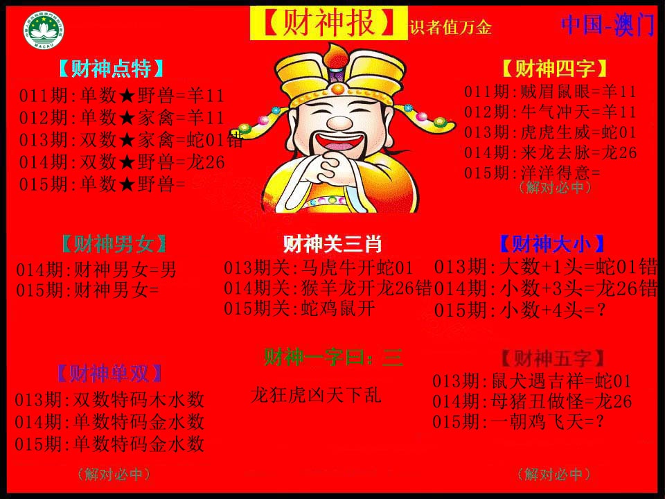 澳门财神到玄机
